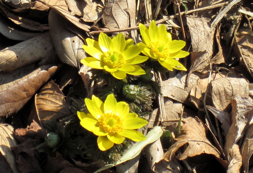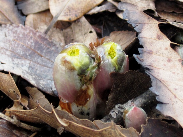 春のはじめ、地めんからつぼみをのぞかせてさく黄色い花