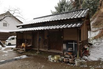 味噌蔵は、主屋の西面に建つ蔵で、北室は味噌・醤油(しょうゆ)蔵、南室は窯(かま)を設けた味噌つくりの作業場で、機能的な間取りとなっています。明治時代前期の建築と推定され、現在も味噌つくり等の作業加工場として使われています。地域の豪農の屋敷構えを構成する建物であり、当時の味噌つくりの様子がうかがえる貴重な建物です。
