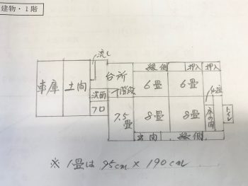 | 構造/間取り | 木造/7DK(和室8畳×2、7.5畳×1、6畳×2、4.5畳×1、洋室×1、DK、洗面所、風呂、トイレ、土間) |