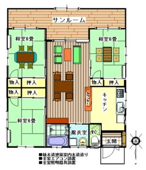 | 構造/間取り | 木造/3LDK(和室6帖 X3) |