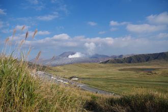 草千里ヶ浜は、約3万年前の噴火活動により形成された火口跡で、直径約1キロメートルの草原が広がっており、阿蘇の代表的な観光名所となっています。古記録等によれば、砂千里ヶ浜とともに「千里ヶ濱」と呼ばれ、見渡す限り浜のように広い場所という意味を持ちます。近代に入ると阿蘇山が観光地として有名になり、草千里ヶ浜は新たな風致景観として様々な文人たちの詩歌に詠われるようになりました。