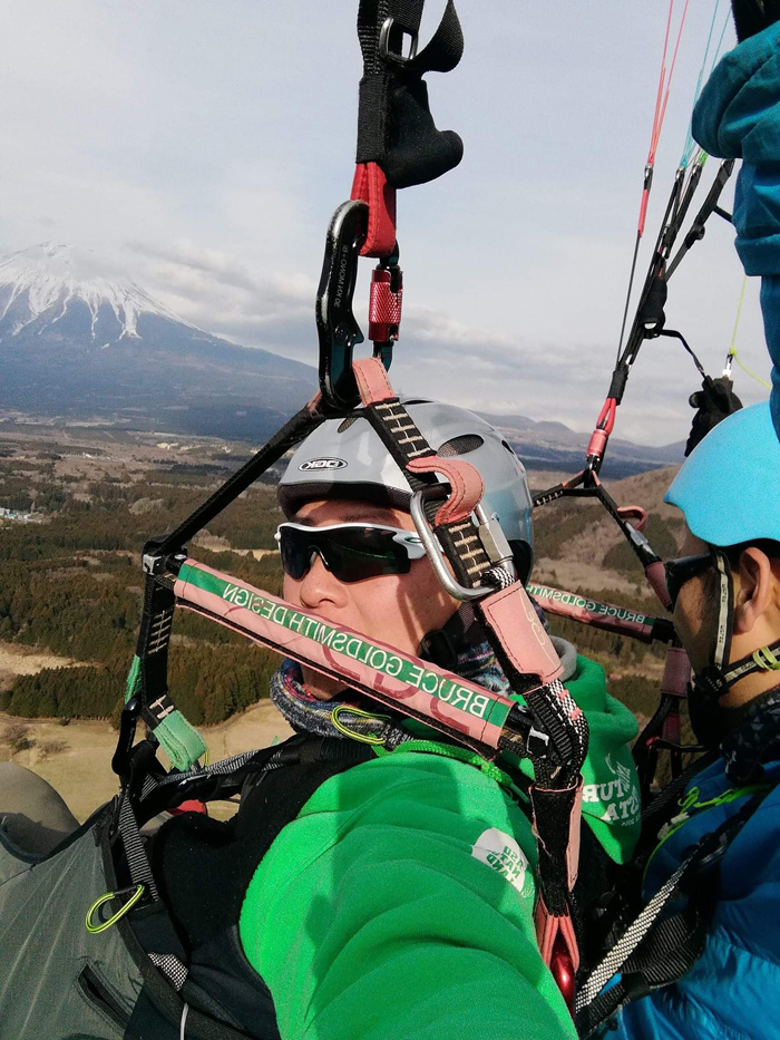 きっかけはひょんなことから。パラグライダーを阿蘇で体験したのをきっかけに、当時阿蘇市内牧(うちのまき)にあったパラグライダースクールに就職するという何とも夢のある話。
