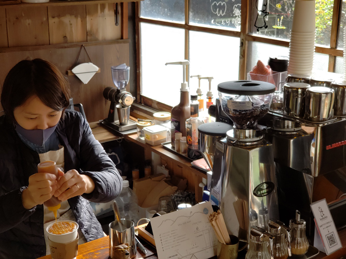 初めてお会いしたのが、お二人で市役所に来られてあれやこれやの相談から。とても感じが良いご夫婦だな~っと。それから、少し時間が経ち、気付いたらカフェがOPEN!!時間を見つけては何度も通うように、、、。全国からの移住相談者さんをお連れして阿蘇市内アテンドもやってますが、お二人の立ち回りや佇まいを見ていただきたくてショップに立ち寄ることも。お二人の人柄とお店の雰囲気からでしょう、ついつい長居してしまうkomeko。おすすめの米粉100%シフォンサンド、コーヒー。ご夫妻の人柄の良さと味がくせになる。それはそうでしょうね、店外にも【待ち】のお客様。阿蘇市に来たら必ず寄るべきスポットになっていますよね。